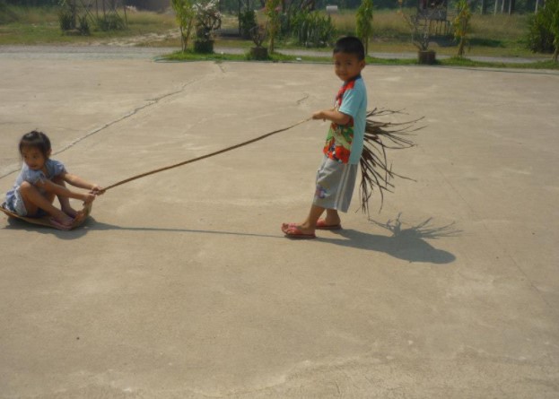 ลากกาบมะพร้าว หรือลากกาบหมาก ของเล่นพื้นบ้านไทย ของเล่นวันวาน